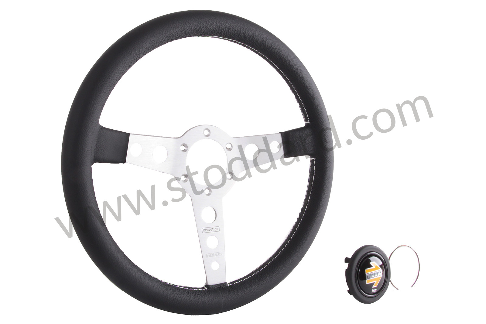 BLACK LEATHER MOMO PROTOTIPO THREE-SPOKE STEERING WHEEL for Porsche