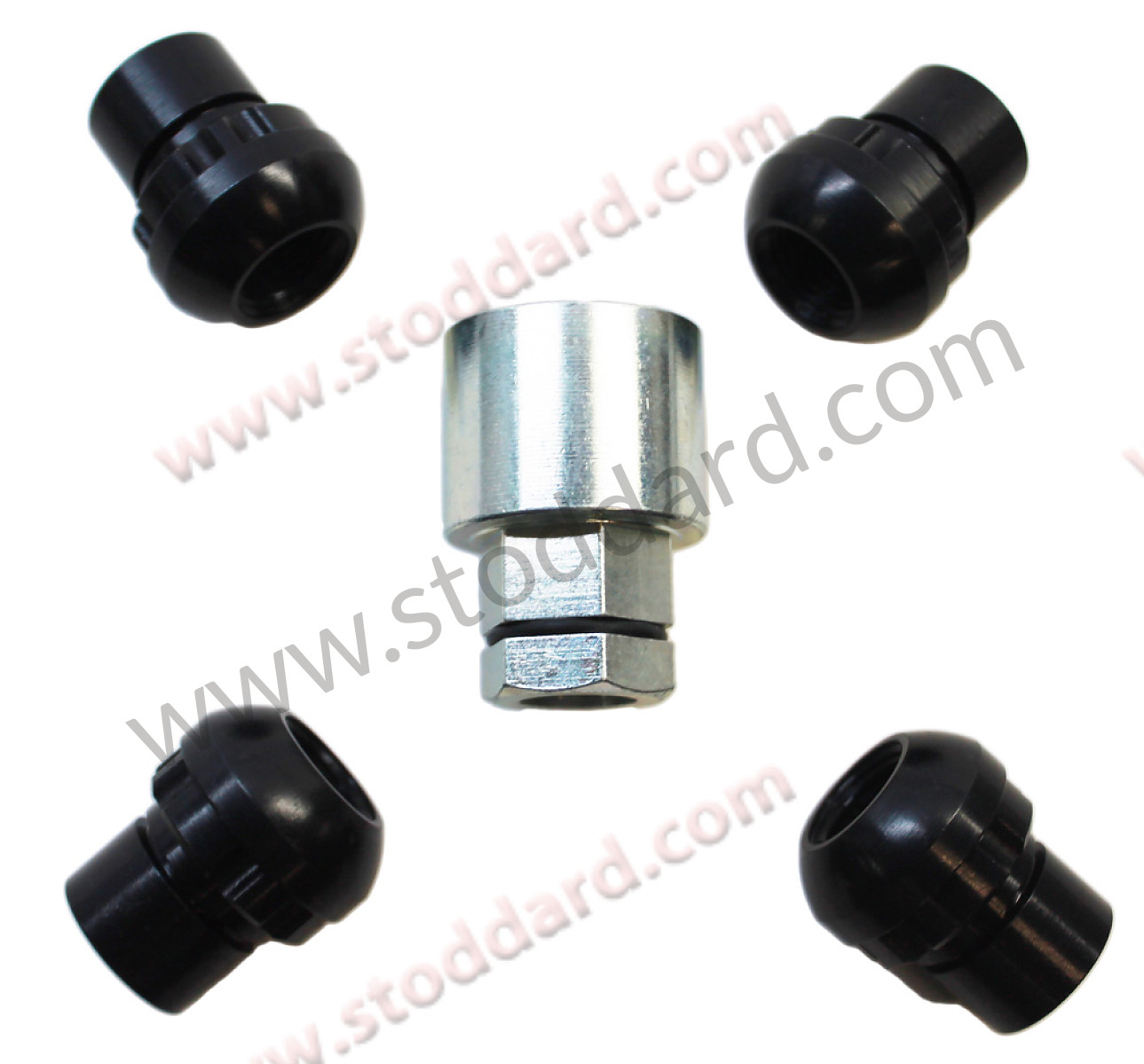 993-361-057-00 Locking Wheel Lug Nut Set. Porsche Classic Part with four nuts, keys and covers. 99336105700 993.361.057.00